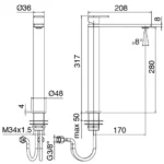 Elegant Tall Mixer Modern High-Rise Italian Stainless Steel Bathroom Faucet for Countertop Installation 100% Brass Material
