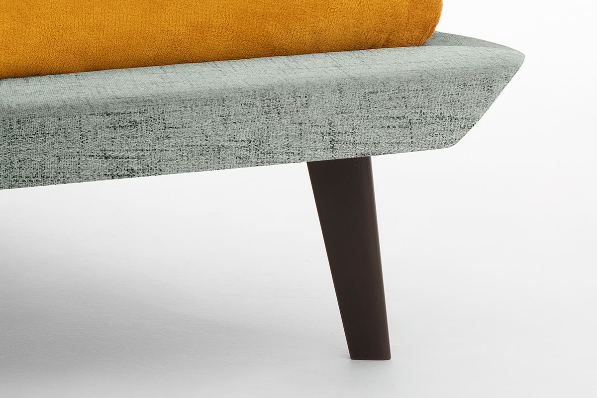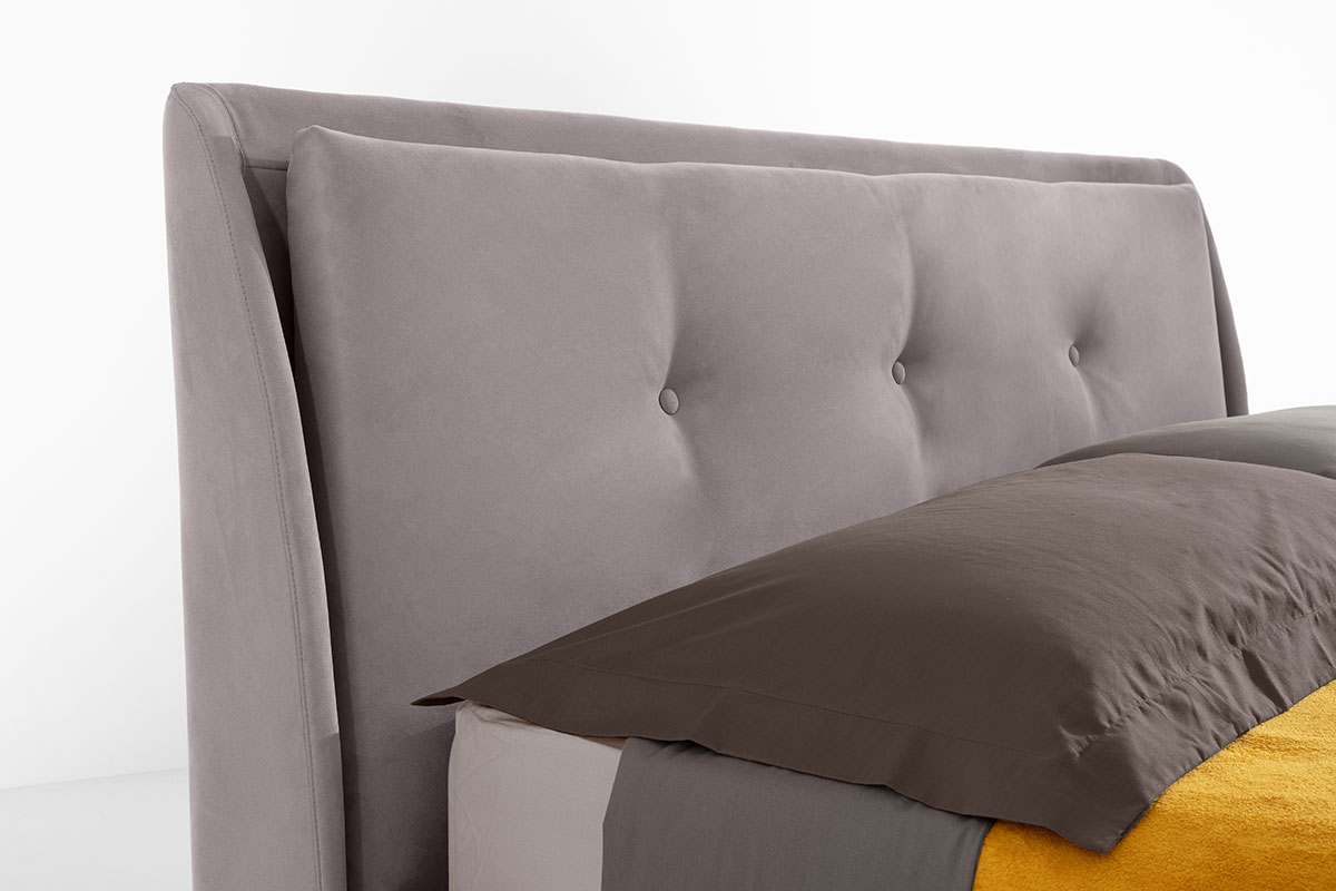 The Diletta bed by Gienne is an upholstered double bed featuring an essential and modern design, which combines the warmth of the wood-essence structure with the softness of the padding.
