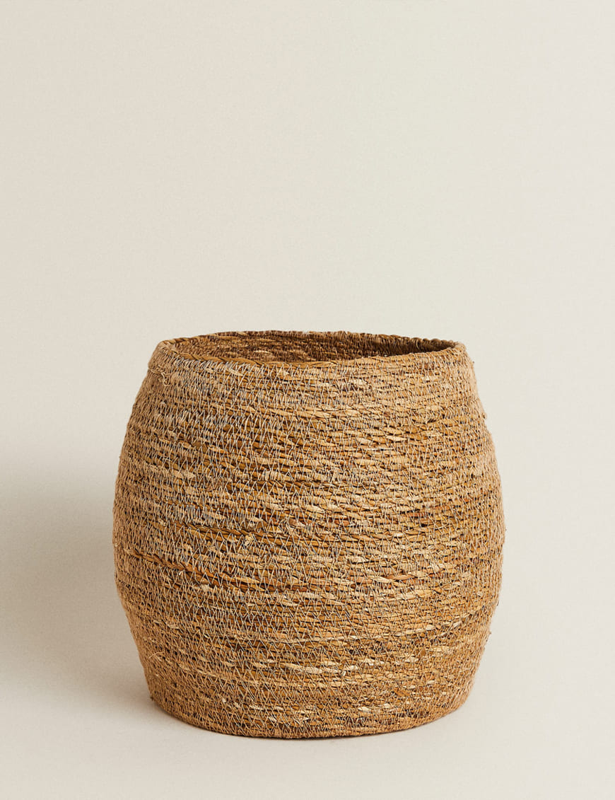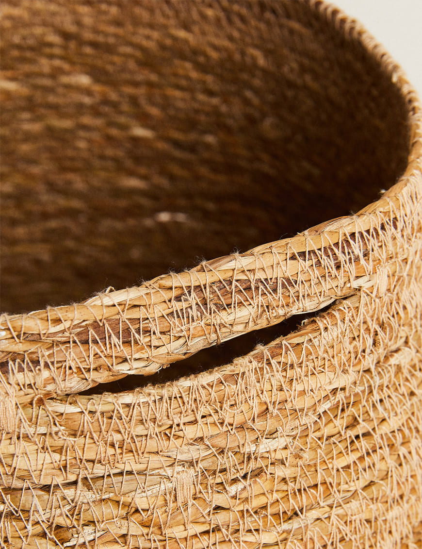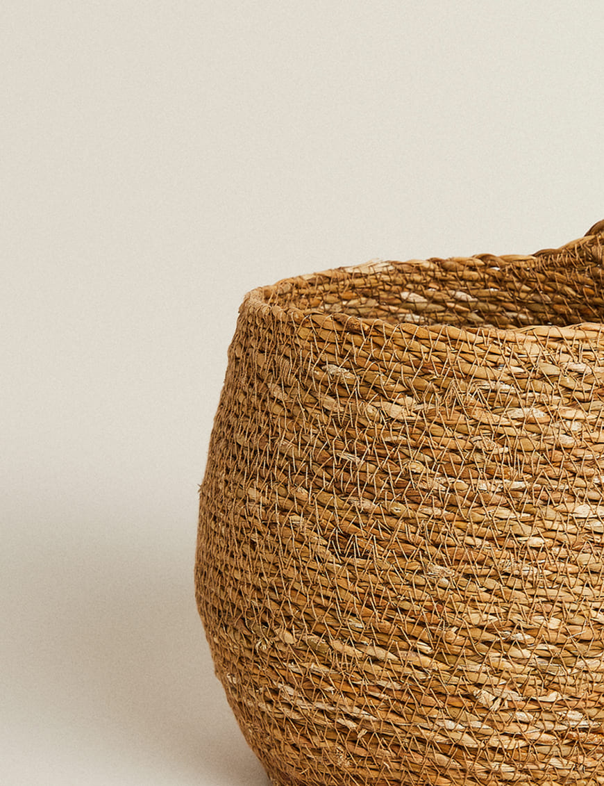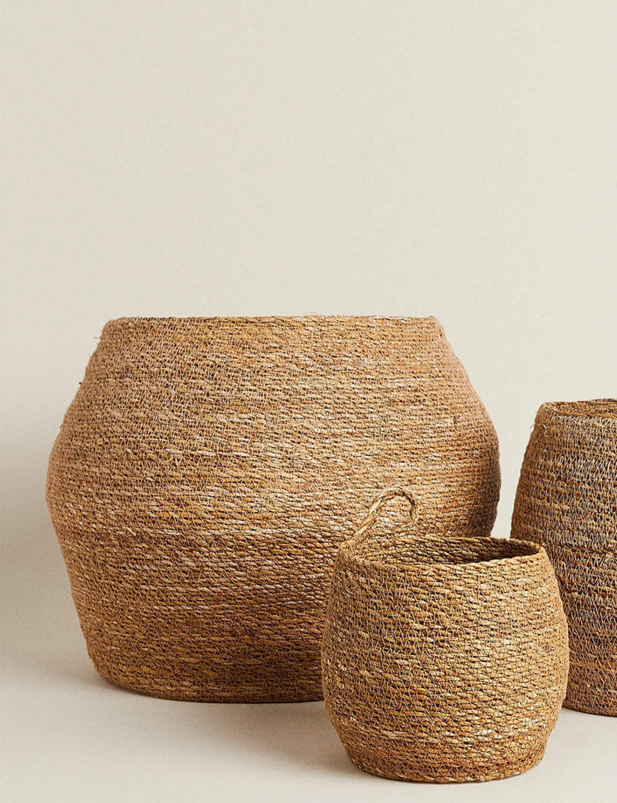 Seagrass baskets often showcase a woven pattern, creating a textured and visually appealing surface.