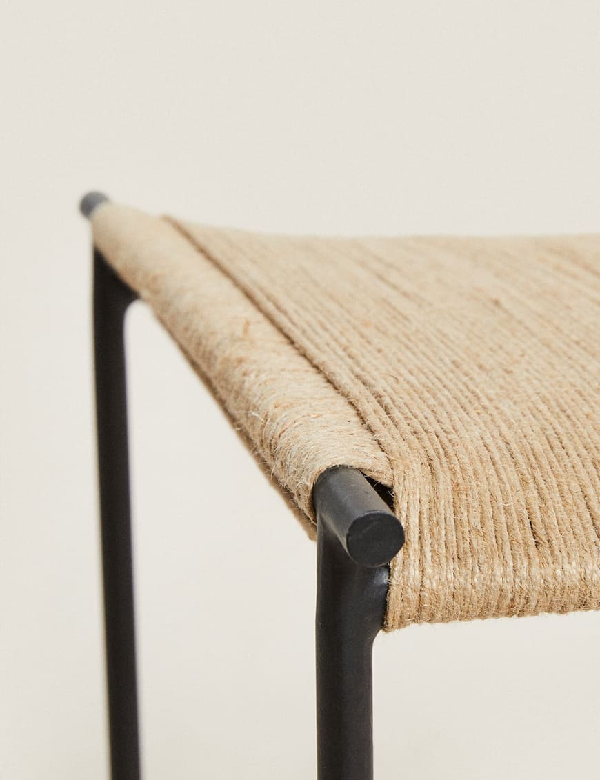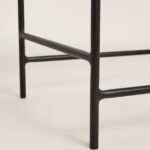 This bench typically features a metal frame that is intricately woven or latticed with metal strips or wires to form a sturdy yet visually appealing surface. The weaving technique might create patterns or designs within the metal structure, adding to its aesthetic appeal.